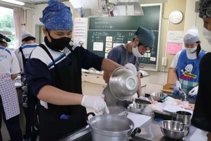 ときわ学級 調理の様子 公開日 2021/07/09 更新日 2021/07/09 ときわ学級 しっかり炒めて味をつけてから炊き込みます。 3回目の炊き込みご飯でしたので、いつもより早く作ることができました。