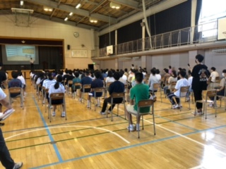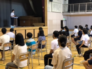 オリンピックパラリンピック講演会2 公開日 2021/07/10 更新日 2021/07/10 できごと 水島さんは、体操競技についての歴史や繰り広げられる技術について丁寧にお話くださいました。また、ひとつのことを成し遂げるには、『夢を持ち続けること』『とにかく取り組んでみること』『感謝の気持ちを持つこと』が大切であるというメッセージを生徒たちに発信してくださいました。水島さんへの質問を述べた生徒、謝辞を述べた代表生徒は、実に堂々としていて立派でした!