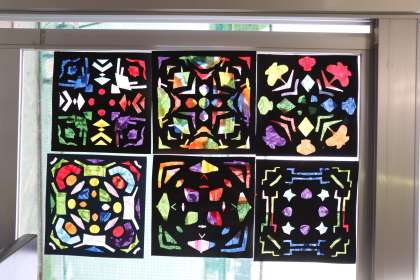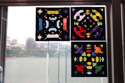 美術のグループBでは、紙ステンドグラスを作りました。
