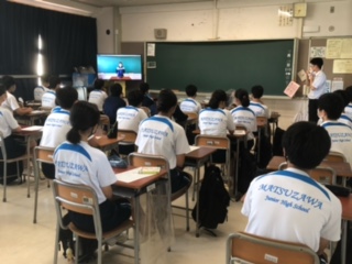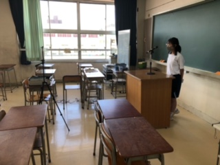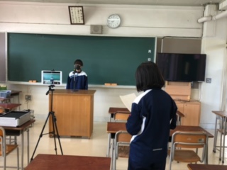 今学期最後の生徒朝会です。生徒会役員、各専門委員会の委員長さんが、今月の活動報告と全校生徒の皆さんへのメッセージを、zoomを通して話します。