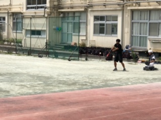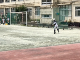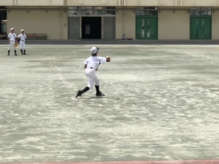 野球部の様子です。顧問の先生から出されるボールに、生徒たちは食らい付いていきます。元気のよい声が響きます。