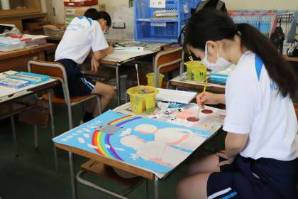背景が塗り終わり、メインに取りかかる生徒が増えてきました。