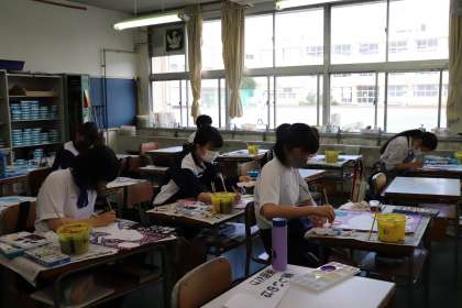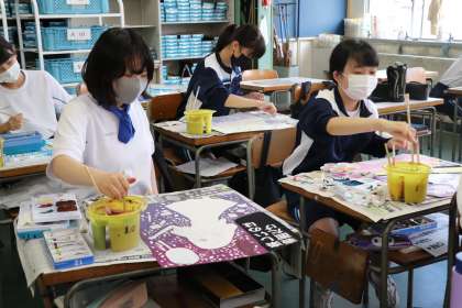 美術部では、薬物乱用防止ポスターや、選挙啓発ポスターの出品に向けて制作をしています。