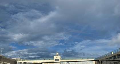 今朝は校舎の上に虹がかかっていました。(写真ではちょっと薄いですが、、。)