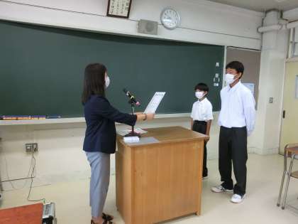 また、夏休み中の大会で活躍した部活動の表彰を行いました。
