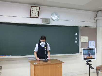 2学期がスタートしました。始業式では、校長先生からしばらくは分散登校・オンライン授業となりますが、どんな状況でも自ら学ぶ姿勢を大切にというお話がありました。