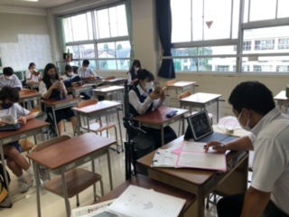 2年生の様子です。画面越しで出欠席をとっていくと、元気の良い返事が返ってくると、何だか嬉しいです!