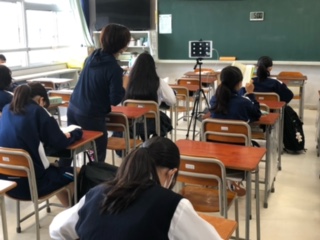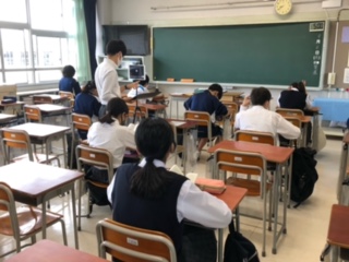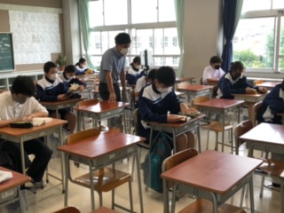1年生の様子です。オンラインで出欠席をとっている間、登校している生徒たちは静かに朝読書をしています。