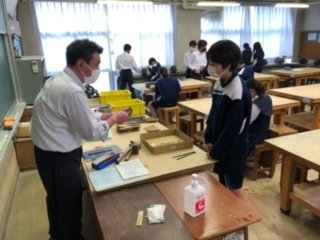 ?2年技術の授業は、金属加工です。少々寂しい気もしますが、教室にはスペースにゆとりがあって、作業ははかどりそうです!