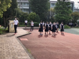 朝の登校風景です。分散登校期間を終えて、学校に活気が戻ってきました!