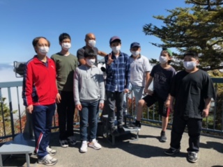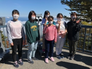?富士小御嶽神社の展望台で記念写真、パチリ!