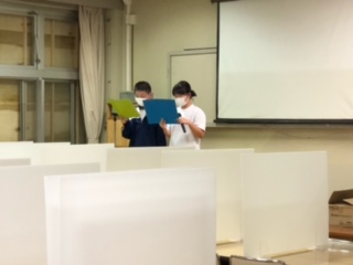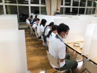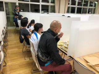 「いただきます」の挨拶は、松沢中の生徒が代表して行いました。マイクを使ってしっかり挨拶できました。