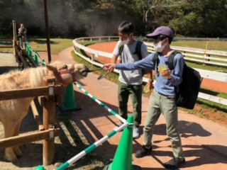 ときわ学級 連合移動教室(3日目)10 公開日 2021/10/06 更新日 2021/10/06 ときわ学級 ミニチュア牧場では、ミニホースににんじんのえさやりを体験できます。(エサ代はかかります)何人かの生徒がチャレンジしていました。先生も楽しそうですね!