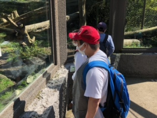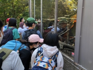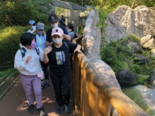 ふれあいゾーンには、チーターやカバ、リスザルなどの動物がいます。みんな興味津々です。