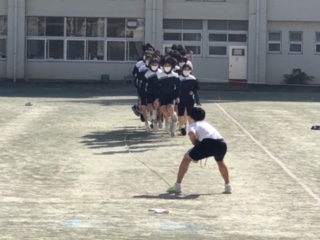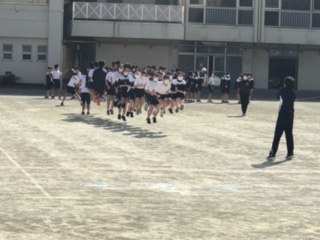 昼休みは、クラスごとに大縄跳びの自主練です。大縄跳びは、昨年は感染症拡大の懸念から中止になった種目です。1.2年生は初めて、3年生にとっては2年ぶりです。輝く太陽の下、生徒たちの掛け声が響きます。