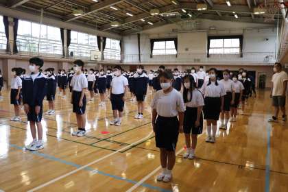 ときわ学級も運動会に向けて頑張っています! 公開日 2021/10/13 更新日 2021/10/13 ときわ学級 松沢中学校全体が運動会に向けて様々な取り組みを進めています。ときわ学級も運動会に向けて頑張っています。今日は、1年生の学年練習に混ざり、行進練習、ラジオ体操を練習しました。また、参加種目の順番や走るコースの確認をしました。 練習を頑張って、良いものに仕上げていきたいと思います!