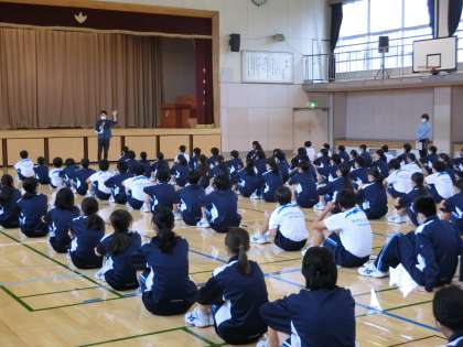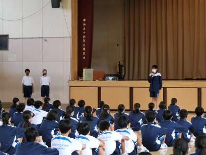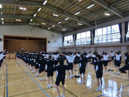 3時間目には、行進練習、ラジオ体操練習、招集隊形の確認を行いました。体育委員は進行や全体への挨拶を務めました。