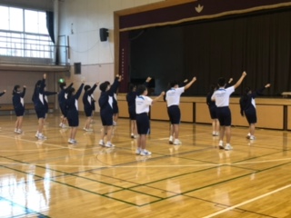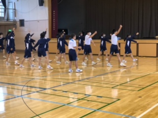 運動会応援団練習1 公開日 2021/10/13 更新日 2021/10/13 できごと 運動会応援団の練習が始まっています。全体で合わせたり、部分的に3年生が1.2年生に応援ダンスを教えたりしています。写真は3A率いる黄組の練習風景です。