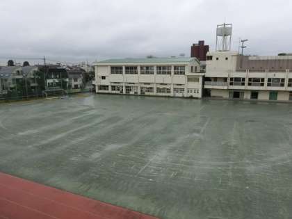 運動会前日は一日雨となりました。本来なら前日に準備を行うのですが、写真のとおり校庭は水溜りができているため、ライン引きやテントを立てるなどの準備は、明日の朝、行います。