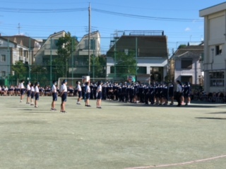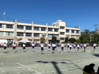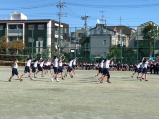 青組1B.2C.3Bの応援です。青組は、グラウンドを大きく使ってパフォーマンスを行なっていました。
