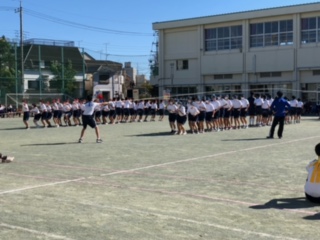 いよいよ大縄跳びです。1年生の記録は、ときわ学級47回、1A16回、1B33回、1C52回でした。なかなかうまく跳べなくても、最後まであきらめずに跳ぼうとする姿が印象的でした。