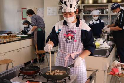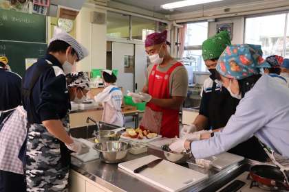 ときわ学級 調理の様子3 公開日 2021/11/05 更新日 2021/11/05 ときわ学級 鮭にはきのことレモンを添えて食べました。 今日のメニューにはバターがたっぷり使われています。 どれも美味しくいただきました。