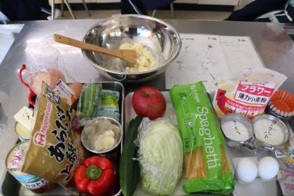 今週のメニューは、ナポリタン、コールスロー、サワーカップケーキの3品でした。