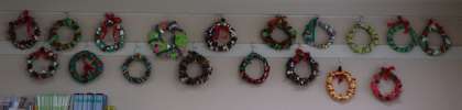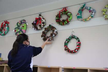 様々な工夫をして、華やかなクリスマスリースが仕上がりました。