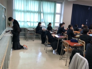 1年生は、冬休みの宿題を含む提出物を回収していました。教科係が率先して回収しています。