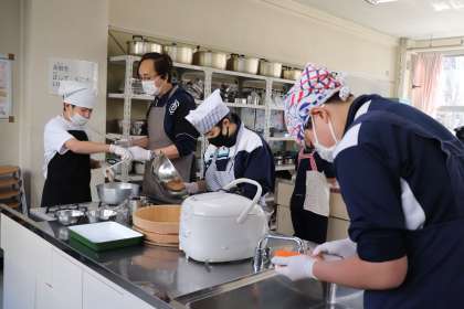 酢飯を作る際の水の量を少なくする理由を学んだり、すし桶について学習したあと、調理に取り掛かりました。