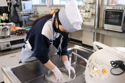 冷たい水に耐えながら、しっかりと米を研ぐことができました。