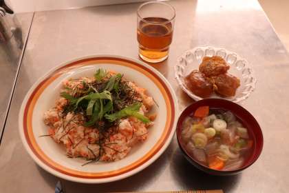 来週も鮭ちらしとけんちん汁、黒糖わらび餅を作ります。