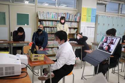 本来なら、くすのき学級の生徒が松沢中学校に来校して交流を行うはずでしたが、感染予防のためオンラインでの開催となりました。