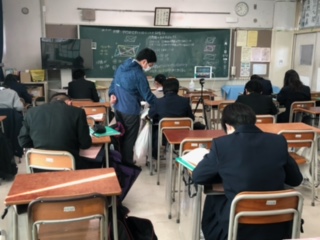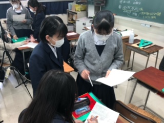 2年生の数学では、平行四辺形の条件を使って図形の証明問題を解いていました。授業の時々に自分の考えを仲間と共有する時間があり、熱心に話し合う姿が見られました。「なるほど!」「そうか!」など、意見を共有する中で生徒の気付きが見られた授業でした。