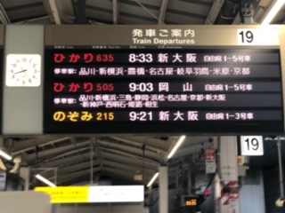 いよいよ新幹線に乗り込みます。乗車する新幹線はひかり635号です。