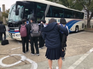 ?新大阪からバスに乗車しました。法隆寺に向かいます。みんな元気です。