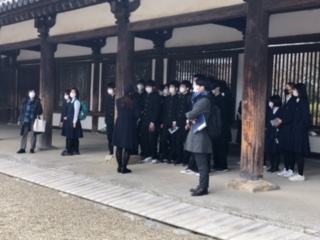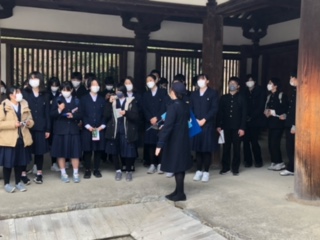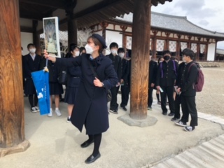 法隆寺はとても空いていて、バスガイドさんの説明もよく聞こえます。みんな真剣に聞いています。