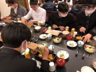 宿の方にご挨拶、実行委員長からの話を終えて、食事係の号令でいよいよ夕食をいただきます!