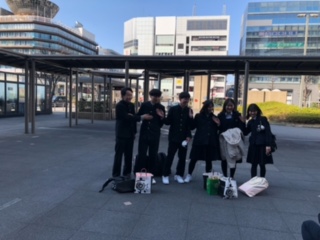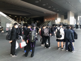 タクシー行動終了時間、続々と生徒たちが京都駅に戻ってきました。