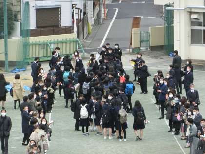 心配していた雨の降り始めも遅くなり、保護者・教職員で卒業生を校庭で見送ることができました。