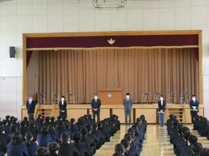 着任式では、着任された先生方の話を集中して聞いたり、話のあとには自らお辞儀をしたりする姿があり、全員が立派な態度で式に臨むことができました。