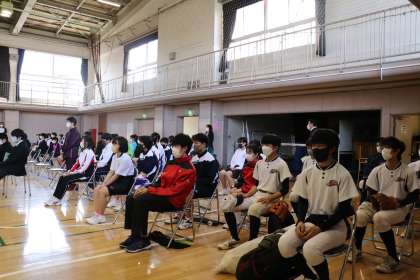 2.3時間目に委員会・部活動紹介を行いました。1年生は、落ち着いて発表を聞くことができていました。2.3年生の発表を聞いて、来週からの仮入部が楽しみになった1年生も多かったのではないかと思います!