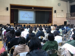 今日は今年度に入って初めての保護者会でした。全体会、学年会、各学級での会と長丁場でしたが、大勢の保護者の皆さまにご来校いただいたことに感謝申し上げます。今後とも本校の教育活動にご理解、ご協力いただけますよう、お願いいたします。