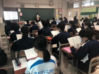 3年国語では孔子の論語「学びて時にこれを習ふ」を学習していました。今日の目標は四つの章句を現代語訳に訳し、孔子の考え方を理解することです。これからこの四つの中からひとつを選び、それに関する新聞を作っていきます。どんな新聞が出来上がるか、楽しみですね!