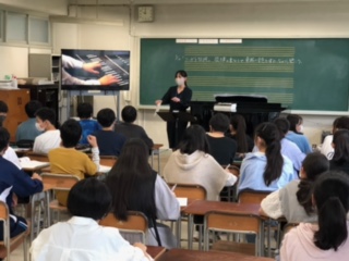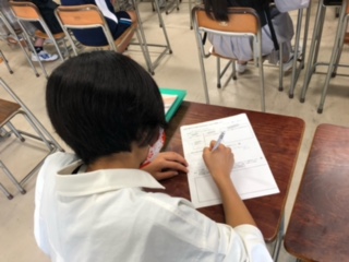 2年生音楽の授業は、音楽鑑賞を行いました。「フーガト短調」の旋律の重なりや楽器の味わいを味わいながら聴くことが目標です。「フーガト短調」に関する資料を画像で提示し、パイプオルガンでの演奏シーンを動画で視聴することで、生徒たちの興味関心も高まっていたようです。みんな熱心に鑑賞を終えて感じた曲のイメージをワークシートに書き込んでいました。