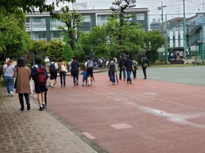 土曜授業は11時30分に終わり、その後11時40分より引き渡し訓練がありました。