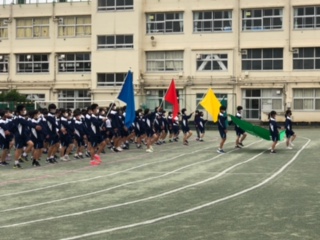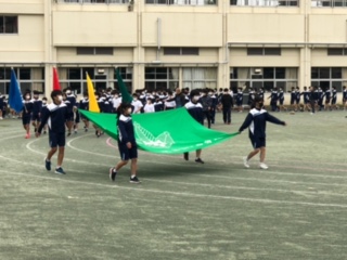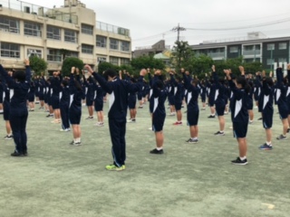 3回目の全体練習です。生徒会、3年生を先頭に1、2年生も元気よく入場行進をしています。「全体の美しさ」を感じます。