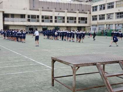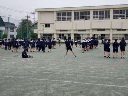 雨が上がり、校庭が使えるので大縄練習をしています。みんなの気持ちを合わせて練習しています。