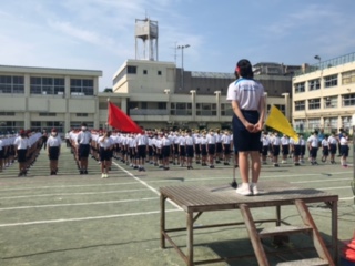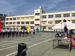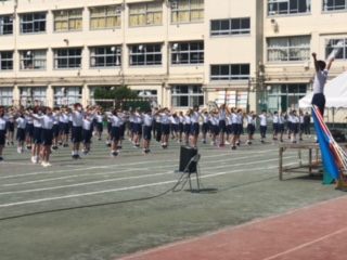素晴らしい天気です。実行委員の開会の言葉で予行練習が始まりました。