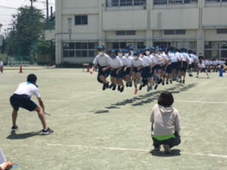 大縄跳びです。1年生の跳んだ数の最高はときわ学級51回、通常級36回、2年生の最高は81回、3年生の最高は112回でした。学年が上がるごとに跳べる回数も増えてきますね。当日は自分たちのベストを出せるように、頑張ろう!(写真は2年生です)